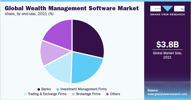 - The bank's segment dominated the market in 2021 and accounted for a revenue share of more than 28.5%. As the global economy continues to strengthen gradually, banks are anticipated to play a key role in managing the growing assets and wealth of individuals.