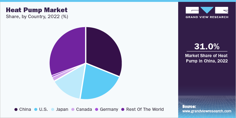 - Asia Pacific accounted for 52.6% of the global revenue share in 2023. The rising trend of shifting production bases to emerging economies, mainly China and India, is expected to positively influence the growth of the heat pump industry over the forecast period