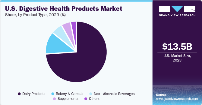 In 2023, the U.S. digestive health products market accounted for a significant 26.21% share of the global digestive health products market. The market's growth is further attributed to the rising consumption of protein-enriched functional foods and dietary supplements in the region. The strong manufacturing presence of key global market players in the U.S., coupled with an increasing number of new protein source start-ups, will continue to drive the demand for functional foods. These functional foods, which contain beneficial phytochemicals, are advantageous for both human and animal health. Consequently, the rising demand for nutraceutical products is expected to positively impact functional foods such as digestive health products, which are a subset of the broader nutraceuticals and functional foods industry.