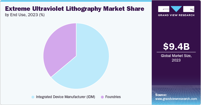 The global Extreme Ultraviolet Lithography Market size was estimated at USD 9.42 billion in 2023 and is projected to grow at a CAGR of 17.3% from 2024 to 2030. The EUV lithography market is experiencing robust growth driven by the rising demand for smaller and more efficient semiconductor devices. As electronics continue to shrink while simultaneously increasing in power and efficiency, manufacturers are turning to extreme ultraviolet (EUV) lithography as a key technology to produce the next generation of semiconductors. This trend is primarily fueled by the ongoing advancements in sectors such as consumer electronics, automotive, and high-performance computing.